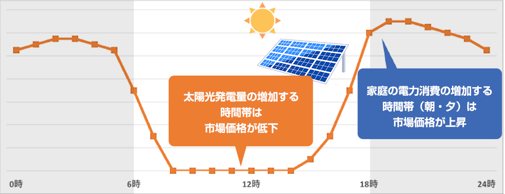 昼間に作られた電気は、電気が過剰に作り出されるタイミングで、市場にて安価に取引されており、市場価格が低下している時間帯に、電気を安く使える市場連動型プランは、日中の電気使用量が多いお客様にとって電気料金削減の可能性があります。